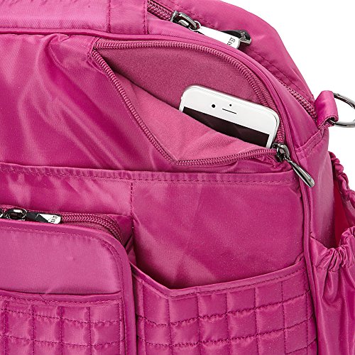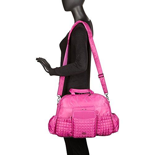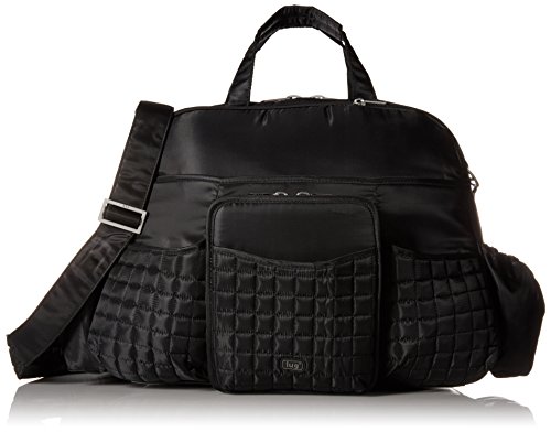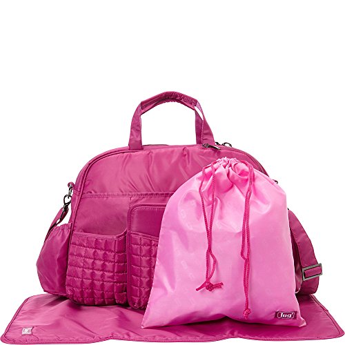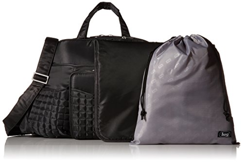 Studio : Lug Parent Code Publisher : Lug Parent Code Binding : Apparel Product Description This big bag comes equipped with all kinds of niceties - padded straps, a ventilated compartment and removable drawstring bag to keep your soiled items separate from your clean, and organizational compartments galore - plus, a slew of baby-friendly features, like a removable padded mat for changing, two front pockets for bottles, and straps that attach the bag to any stroller. Baby or not, this bag is hot! Dimensions: 17"W x 12.5"H x 6"D Features: Wipe able bottom Convenient zip pockets Multiple interior pouches Water bottle pockets Quick access zip pocket for mobile phone Includes drawstring bag change pad (or seat cushion whichever you fancy!) Hidden straps to hook on to stroller if needed Material specially treated with water-repellent material 0