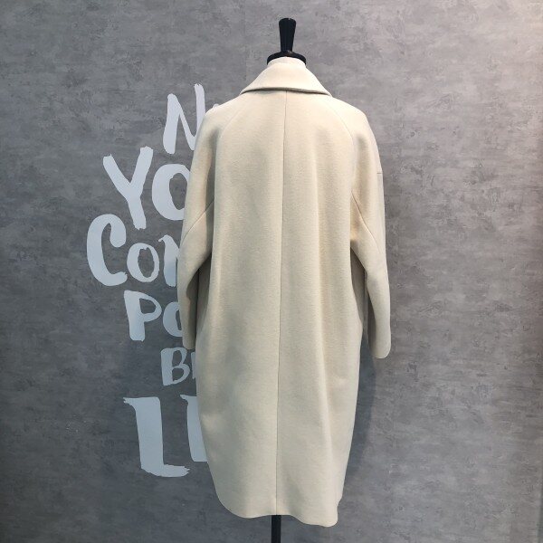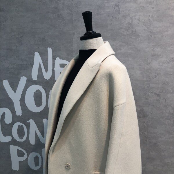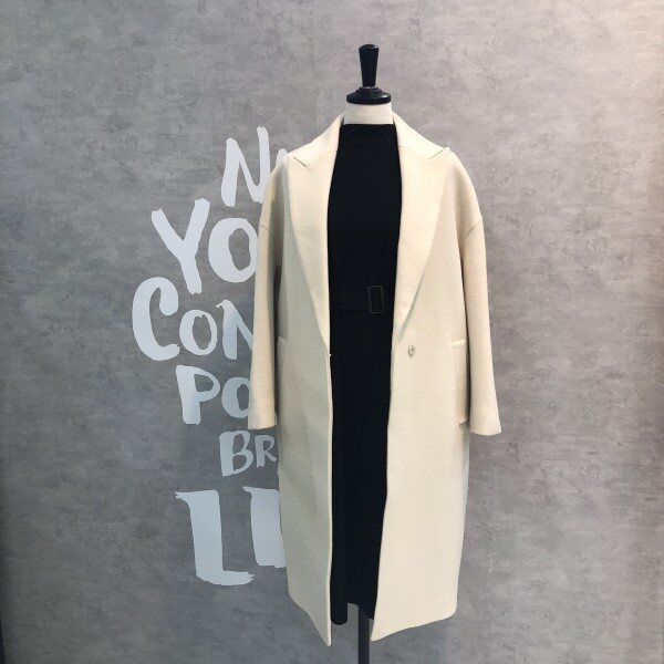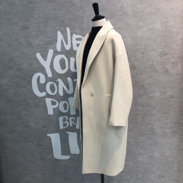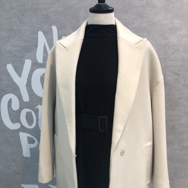 드롭 숄더의 부드러운 실루엣이 돋보이는 울 블렌드 소재의 숄리드 코트입니다