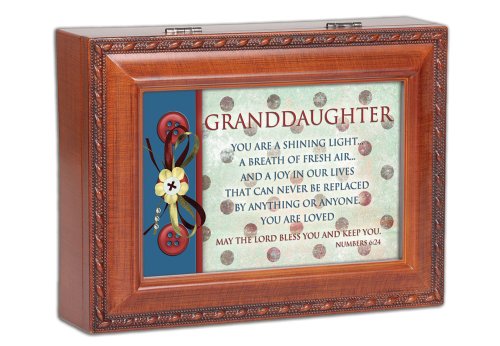 GRANDDAUGHTER WOODGRAIN INSPIRATIONAL COTTAGE GARDEN TRADITIONAL MUSIC BOX PLAYS JESUS LOVES ME