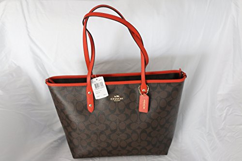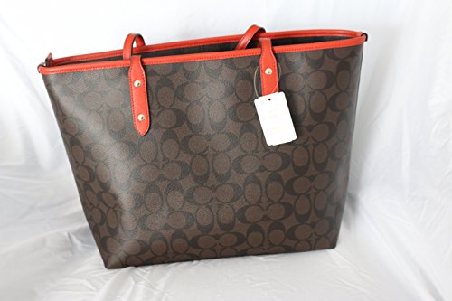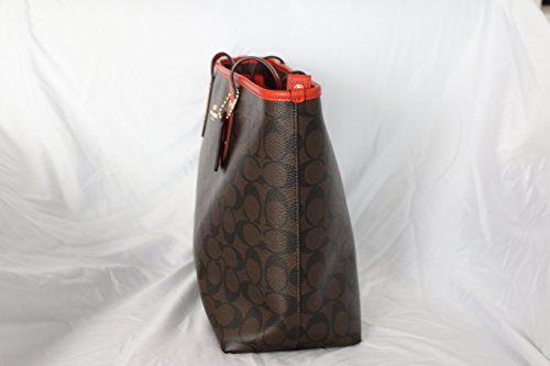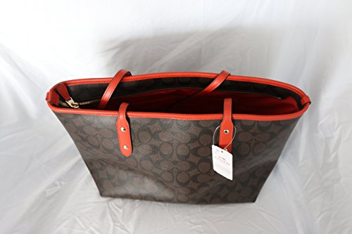 Coach Signature City Zip Tote Bag Handbag, Brown / Carmine