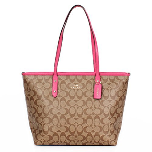 Coach Signature City Zip Tote - Khaki/Dahlia