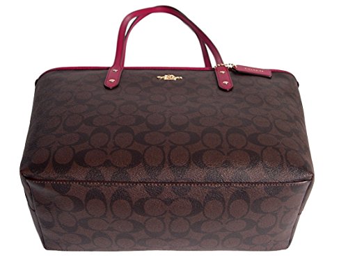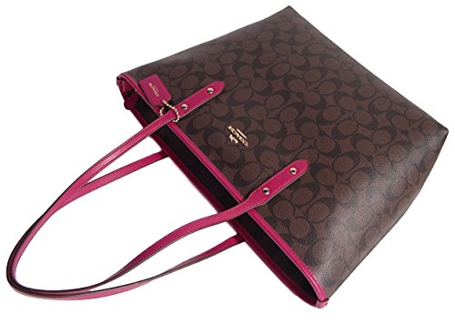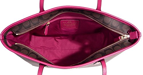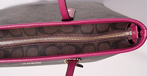 Coach Signature City Zip Tote Bag Handbag (Brown / Fuchsia)