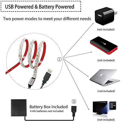 - Battery Powered(AA batterieds not included) led light strip,no need extra AC or DC power.It can be installed inside or outside depending on the version you choose, and is great for computer light,tv backlight, accent lighting, patio lighting, auto lighting, and more.