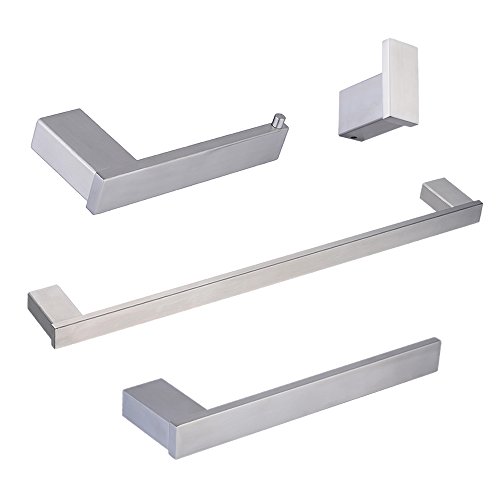 4 Piece Bathroom Accessory Set Kelelife 304 Stainless Steel Towel Bar+Towel Holder+Toilet Roll Holder + Robe Hook Kit, Brushed Nickel