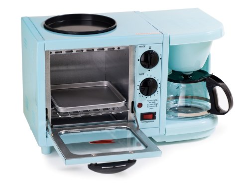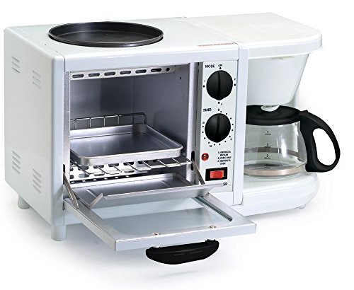 -. Feature : Dimensions: 11 diam. x 18H in. / 500-watt power / 3-in-1 combo of toaster oven, coffee maker, and griddle / 1-slice toaster oven with 15-min. timer and temperature control / 4-cup capacity coffee maker with swing-out filter compartment