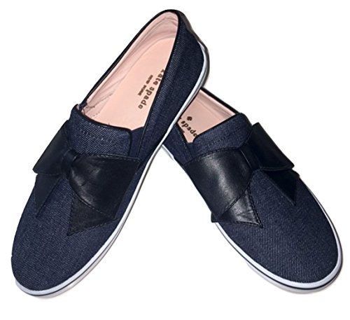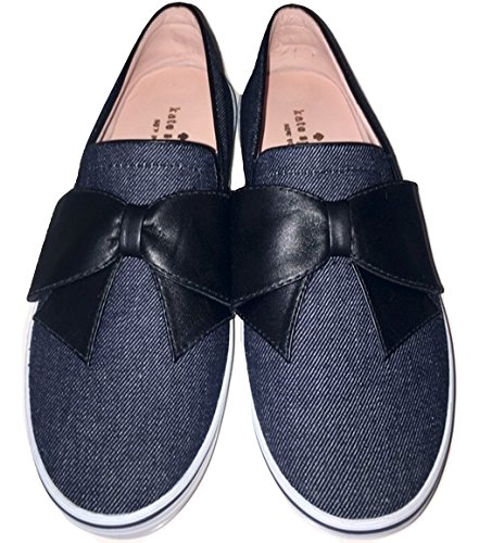 (Kate Spade New York)/Women's/Sports Fan Footwear/DIRECT FROM USA/Kate Spade Indigo Denim Delise Too Black Bow Sneakers Flats Shoes 8.5