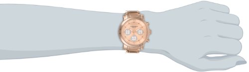 -. Feature : Chronograph features include 60 second, 60 minute timer, and 24 hour sub dials / Rose-tone, sunray, dial with mother-of-pearl sub dials / Rose-tone, stainless steel, bracelet and case / Precise quartz movement / Water resistant to 165 feet (50 M): suitable for swimming and showering
