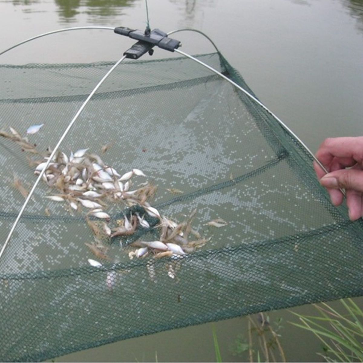 Features:Specifications of HKS Shrimp Dip Net Mesh Trap Baits Cast Crab Minnow Crawdad Lobster Foldable 80x80cm
