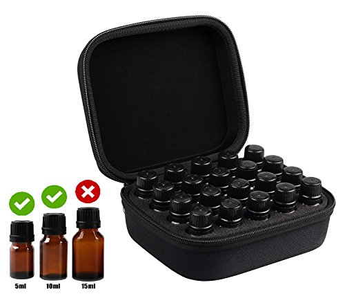 BeeChamp 20 Slots Essential Oil Storage Box Hard Shell Carrying Travel Case with Foam Insert for 10ml Bottles (Black)