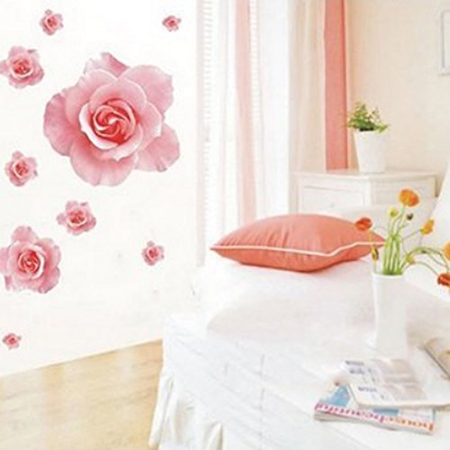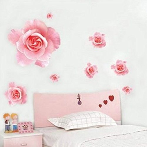 -. Title : Sunward Fashion Wall Sticker 3D Pink Rose Flower Removable Home Decor Decal Vinyl