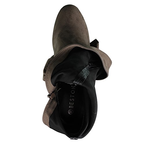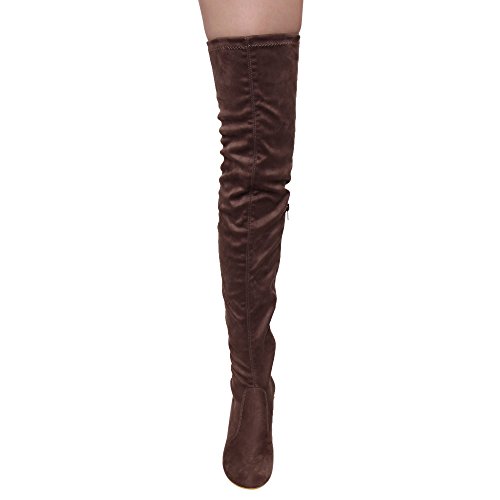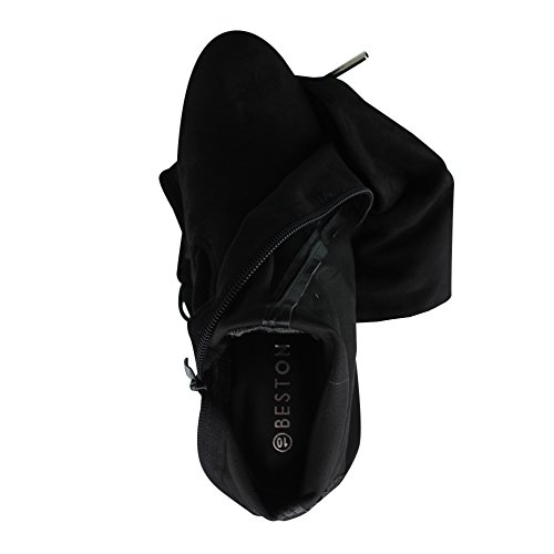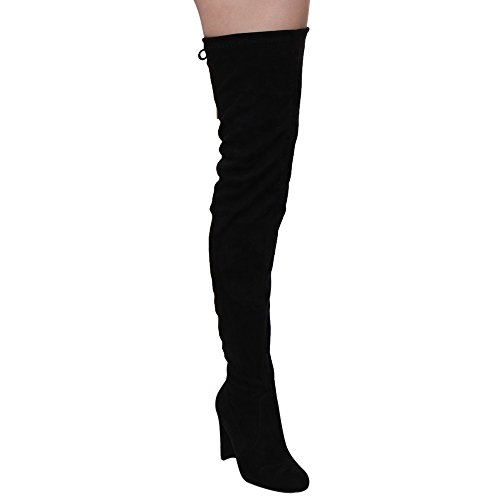 Beston FE62 Women's Drawstring Stretchy Thigh High Block Heel Dress Boots