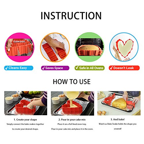 - Feature: DIY can do all kinds of cake shape by magic baking mold. Simply connect the bake snake together to create your desired shape,convenient and practical. This is definitely a money and space saving idea because then you wouldn't have to keep buying pans and you wouldn't waste cake by cutting off pieces of cake to shape it.? The flexibility of silicone is extrememely floppy and pliable and easy to remove the cakes without too much damage to the shape.