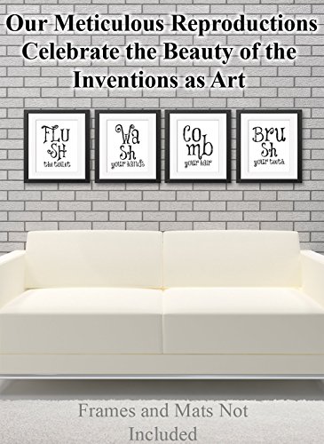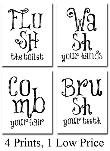 Bring some whimsy into your bathroom. These four prints show minimalist artwork as imagined by award winning artist Norm Lanier.
