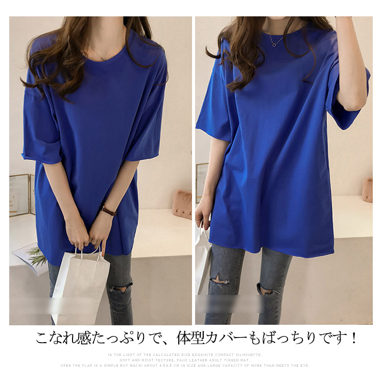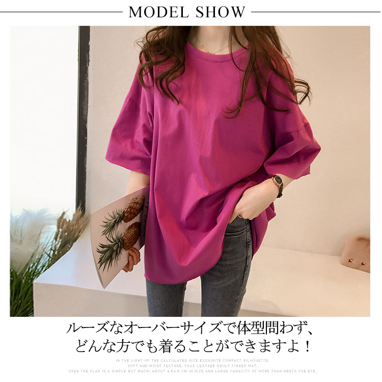 | 今年トレンドのビッグTに使えるシンプル無地の新作が登場!!ルーズなオーバーサイズで体型問わず、どんな方でも着ることができますよ!肩のラインが響きにくいドロップショルダーデザインは今大流行。無地なのでどんなコーデにもOK!こなれ感たっぷりで、体型カバーもばっちりです!ショートパンツやスキニージーンズなどのボトムスと合わせて、簡単にトレンドコーデが完成! | |