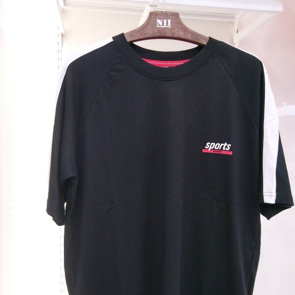 어깨 배색 반팔 티셔츠~앞면 영어 자수처리스포티한 티셔츠
