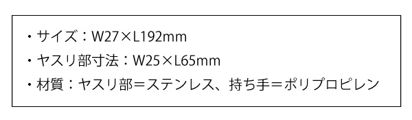 ●材質:ヤスリ部=ステンレス、持ち手=ポリプロピレン