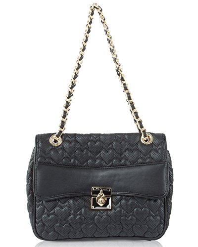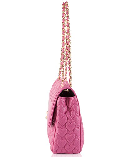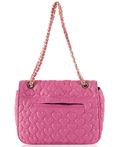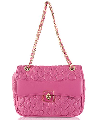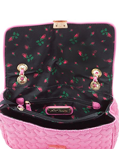 Style yourself for any season with the Betsey Johnson Always Be Mine Shoulder Bag, Featuring a Perforated quilted faux leather exterior, a fold-over flap with Turnlock closure, Chain Detail Strap, Fully Lined interior with Center zip, 2 slip and 1 zip pocket. A fun feminine design make this bag one you'll want always and forever.Feature