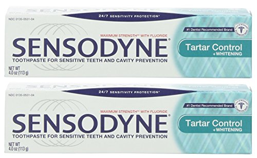 Sensodyne Toothpaste for Sensitive Teeth and Cavity Prevention, Maximum Strength, Tartar Control Plus Whitening, 4-Ounce Tubes (Pack of 2)
