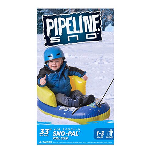 Studio : Aqua Leisure Publisher : Aqua Leisure Product Description Your child will love the snow sitting back on the Inflatable Pull Sled (33") from Pipeline Sno. The adorable Air Penguin character sled features a sturdy backrest, heavy-duty pull rope, and cold/crack-resistant construction for added safety and durability. Maximum weight capacity is 120 lbs. ?Holds 1 child ?Dimensions: 33" (84 cm) inflated length ?Cold/crack-resistant ?Heavy-duty pull rope ?Maximum weight capacity: 120 lb ?Recommended ages 1 - 3 years 0
