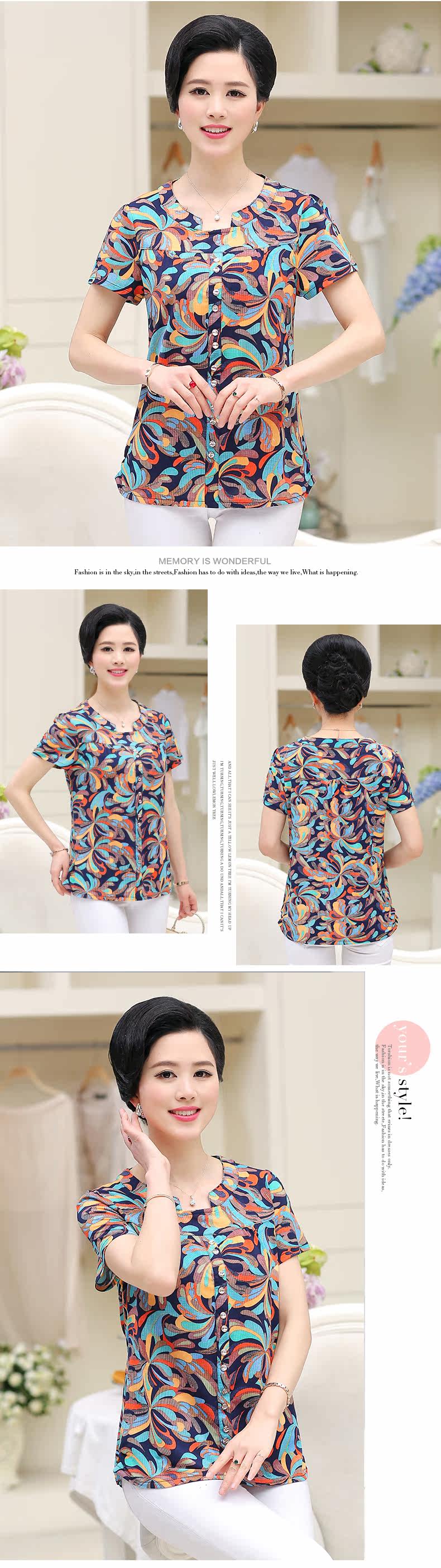 中老年女装夏装上衣中年女装夏季新品40-50岁妈妈装夏装短袖T恤