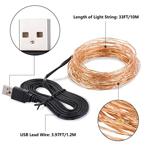 - VIVOFOCUS fairy LED string light with 33 feet (10 meters) of miniature, warm white LEDs.