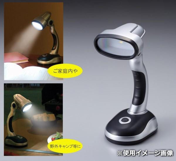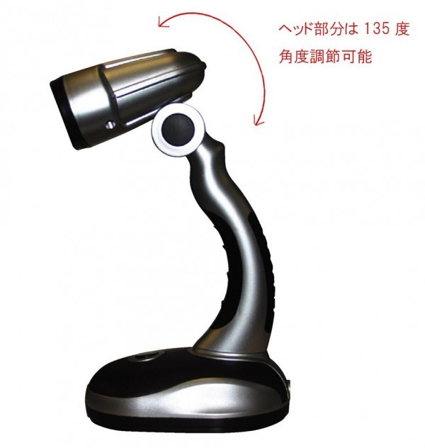 | 野外キャンプで、ご家庭内でも大活躍!ヘッド部分は135度角度調節可能。アーム部分は持ちやすいグリップに。非常時には手持ちライトとしても使えます。 |