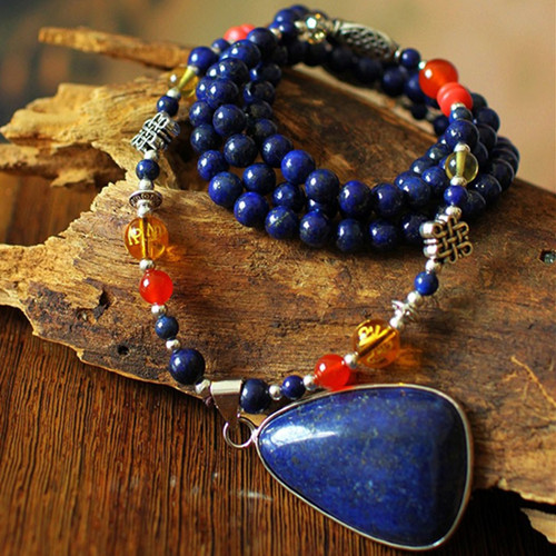 Material: natural lapis lazuli, crystal glass, Tibetan silver, onyx
