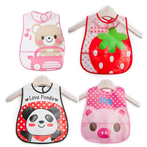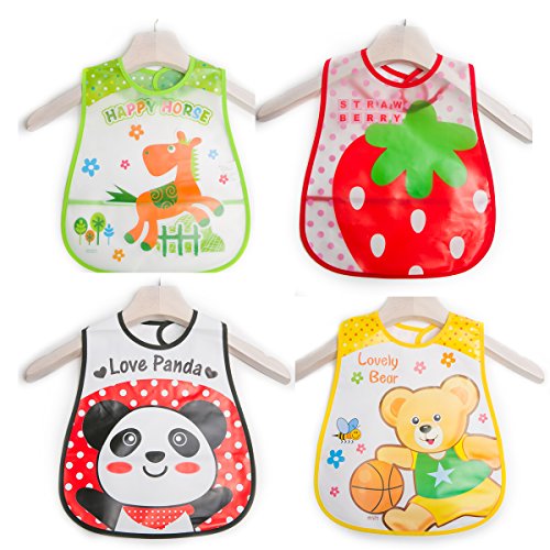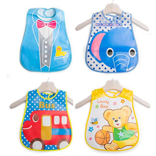 -. Title : Waterproof Soft Feeding Baby Bibs with Pocket,4 Pack