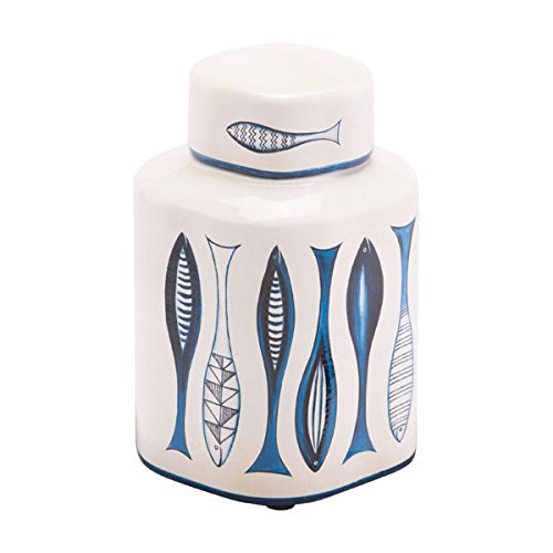 Zuo Modern Zuo Fish Temple Jar Small White and Blue
