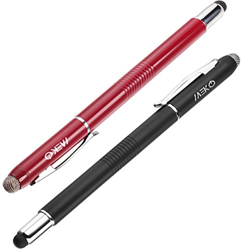 - Title : MeKo® 2Pcs [3 in 1 Series] Stylus pen ** MICRO FIBER TIP(replaceable) + RUBBER TIP(replaceable) + FINE BALL PEN(refillable) ** for ALL Capacitive Touch Screen Smartphones ,Tablets, PC - Extras 2 rubber tips +2 Refill ink - (Red&Black)