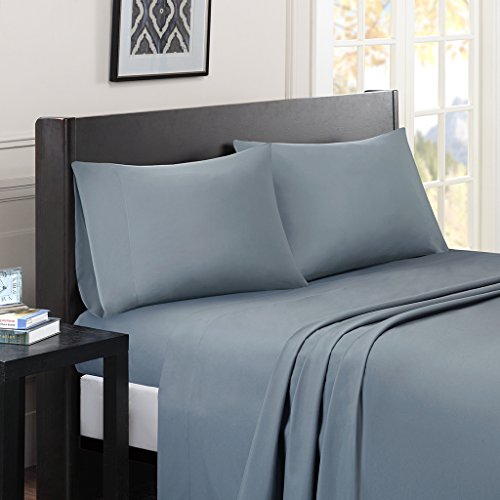 Madison Park Essentials Micro Splendor Solid Sheet Set, Twin X-Large, Blue