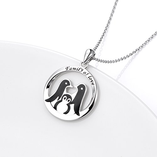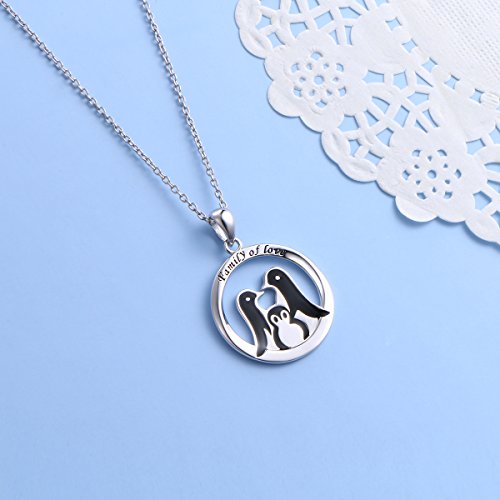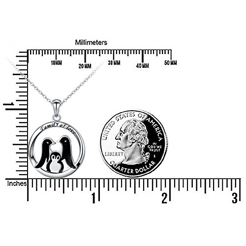 Theme: Sterling Silver 925 Charm Engraved " Family of Love " Penguin Necklace for Girls