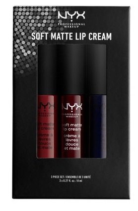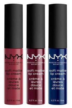 -. Binding : Health and Beauty -. Brand : NYX -. EAN : 0800897124809 -. Feature : This set includes Soft Matte Lip Cream shades in Copenhagen, Budapest and Moscow / It's light on the lips and highly pigmented-a perfect combination / Apply with included applicator / For more precision, line the lips using lip pencil P.R.Ior to application -. IsAdultProduct : 0 -. Label : NYX Professional Makeup -. Manufacturer : NYX Professional Makeup -. MPN : MFP50W -. NumberOfItems : 1 -. PackageQuantity : 1 -. PartNumber : MFP50W -. ProductGroup : Beauty -. ProductTypeName : BEAUTY -. Publisher : NYX Professional Makeup -. ReleaseDate : 2017-11-10 -. Studio : NYX Professional Makeup -. Title : NYX PROFESSIONAL MAKEUP Soft Matte Lip Cream Set No. 12 -. UPC : 800897124809