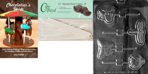 Cybrtrayd '4 Garden Bugs Lolly Ladybug' Animal Chocolate Candy Mold with 25 4.5-Inch Lollipop Sticks and Chocolatier's Guide
