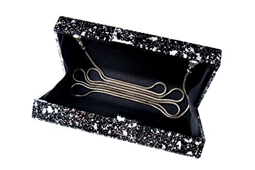 This black clutch evening bag is made of acrylic material that it is easy to clean, dustproof and waterproof with hard box
