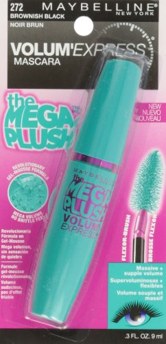 Maybelline New York Volume Express Mega Plush Washable Mascara, Brownish Black, 0.3 Fluid Ounce