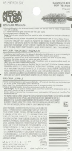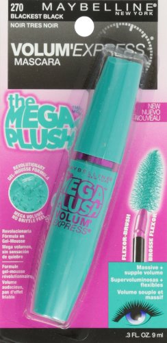 Maybelline New York Volume Express Mega Plush Washable Mascara, Blackest Black, 0.3 Fluid Ounce