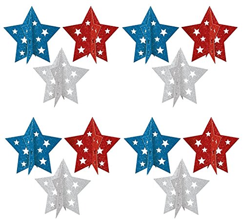 (Black Duck Brand)/Stationery Party Supplies/Party Supplies/DIRECT FROM USA/Set of 12 Mini Patriotic 3-D 4th of July Party Table Centerpieces Decoration, Cardstock, 5", Pa...