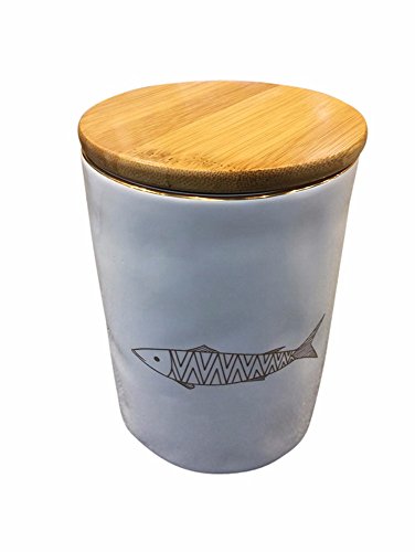 Benzara Fish Patterned Decorative Ceramic Covered Canister, White