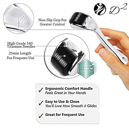 Derma Roller - .25mm Cosmetic Needling Instrument for Skin, 540 Titanium Micro Needles, Includes Free Storage Case & Instructions on Use