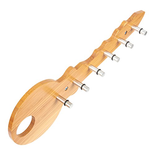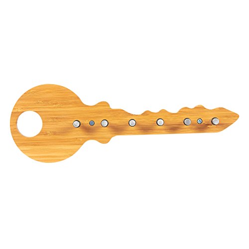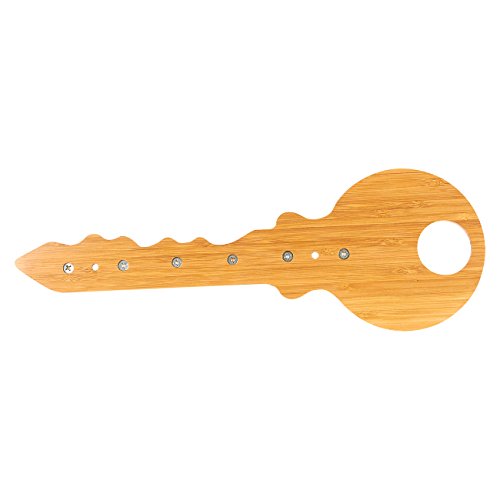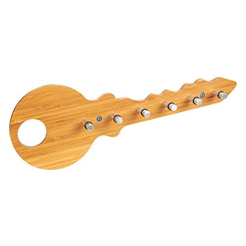 BAMBOO KEY RACK WITH 6 PEGS: This wall-hanging key rack in the shape of a giant key is ideal for hanging your common keys, keychains and lanyards with ID cards. It allows for easy reach and access to your keys. Comes with 6 separate stainless steel pegs, 6 short screws, 2 long screws, and 2 green drywall anchors.