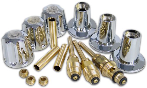 - Includes 2 H/C stems 1 Diverter stem 3 chrome handles and trim, 3 brass bibb seats and all necessary washers and gaskets