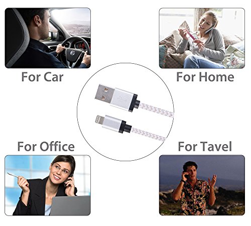 Design: Flexible and tangle free, cable conductors inside are well covered by sturdy braided jacket that is made from nylon fiber. The nylon shielding makes it more durable than ever. The lightning connector is firmly and safely attached to the aluminum alloy casing, which may not so easily result in charging section breaking off or bending