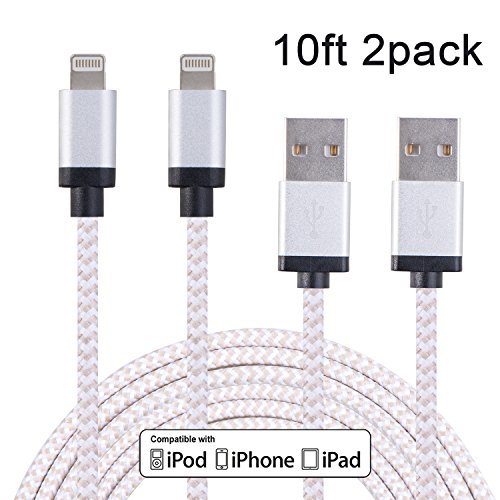 Xcords(TM) 2Pack 10Ft iPhone Lightning to USB Syncing and Charging Cord Data Cable with Aluminum Alloy Connector for iPhone 6/ 6 Plus/ 6s/ 6s Plus /5/5s/5c iPad Mini/ Air