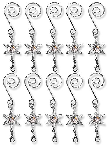 - DECORATIVE S HOOKS. Set of 10 silver star ornament hooks. Pretty clear rhinestone in the middle of each star. Each decorative s hook has a lobster claw clasp at the bottom for easy ornament attachment.