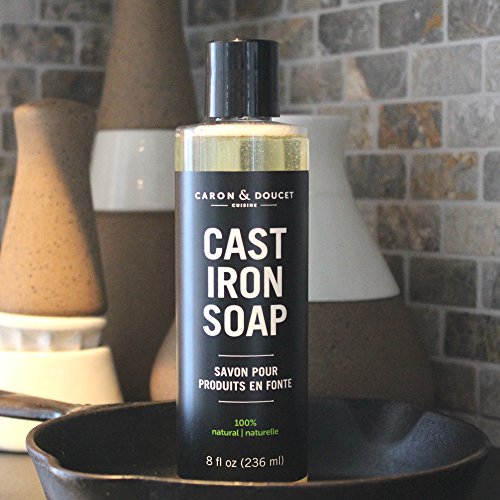 CAST IRON SOAP is ideal for all cast iron cookware such as pots, pans, skillets, dutch ovens, woks, griddles and frying pans, Clean cookware immediately after each use. Apply a teaspoon of soap directly onto cookware and clean with hot water; dry thoroughly. For best results, apply Caron & Doucet CAST IRON OIL after each use to protect and restore seasoning. Pour a small amount of the CAST IRON OIL onto the cookware and use a paper towel or microfibre cloth to work the oil into the cast iron. For best results apply after ever time you use your cast iron. This will repair any damage to the seasoning that may have occurred during the cooking or cleaning process and will prevent moisture damage. Doing so regularly will prolong the life of your cookware. There is no need to put the cookware in the oven to season it as this oil will help to build up seasoning over time. This cast iron conditioner will not go rancid leaving a sticky, smelly residue. Here are some tips for cooking with cast iron cookware. 1) To prevent scratching of the cooking surface use only wooden or plastic utensils. 2) Never store food in cast iron or carbon steel cookware as acid and moisture from food will cause damage to the cookware. 3) Rinse cast iron and carbon steel cookware with hot water immediately after each use. A nylon or natural bristled brush will help remove cooked on food. 4) Always hand wash your cast iron or carbon steel cookware and do not leave it to soak in water. 5) Never wash cast iron or carbon steel cookware in the dishwasher. 6) Remember to apply a coating of cast iron oil after each use. 7) Store your cookware in a dry area to avoid rust damage.Feature