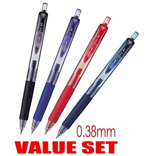 Uni-ball Signo RT Rubber Grip & Click Retractable Ultra Micro Point Gel Pens -0.38mm-black,Blue,Red,Blue Black Ink-Each 1 Pen- value Set of 4 (With Our Shop Original Product Description)
