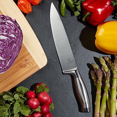 레스토랑 그레이드의쉐프나이프 - 이 튼튼한 부엌칼은,거의 모든 식재료를 정확하게 컷 하는 것으로(에) 최적입니다.인간공학에 기초했다디자인의 손잡이에 의해손이 아퍼지는 일이 없고, 부엌칼의 조작성을 향상에 옵니다.쾌적함과 사용하기 쉬움을 즐겨주십시오.