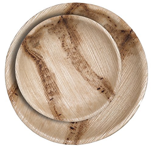 CaterEco 50 Piece Palm Leaf Round Plate Set - 25 10" Dinner Plate, 25 7" Salad Plates - All Natural 100% Compostable Disposable Party Plates