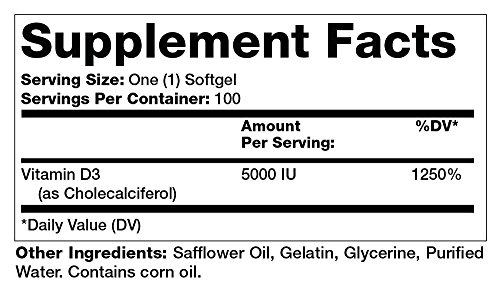High Dose Vitamin D, one of the few products at 5000 Iu dose. Vitamin D3 or cholecalciferol is important for the absorption of calcium and phosphorous and for the functioning of calcium in the body and maintenance of healthy bones.